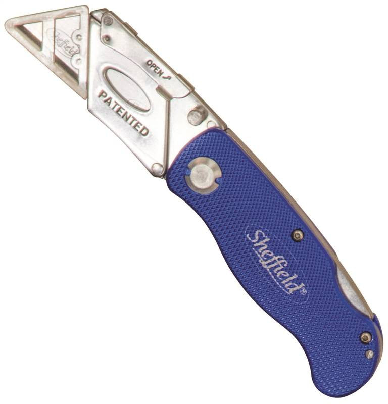 Combines the best features of a lockback knife with a utility knife with a sturdy aluminum handle and fold out blade housing. The blade is changed easily using snap lock and sliding mechanism. Uses standard utility blades.