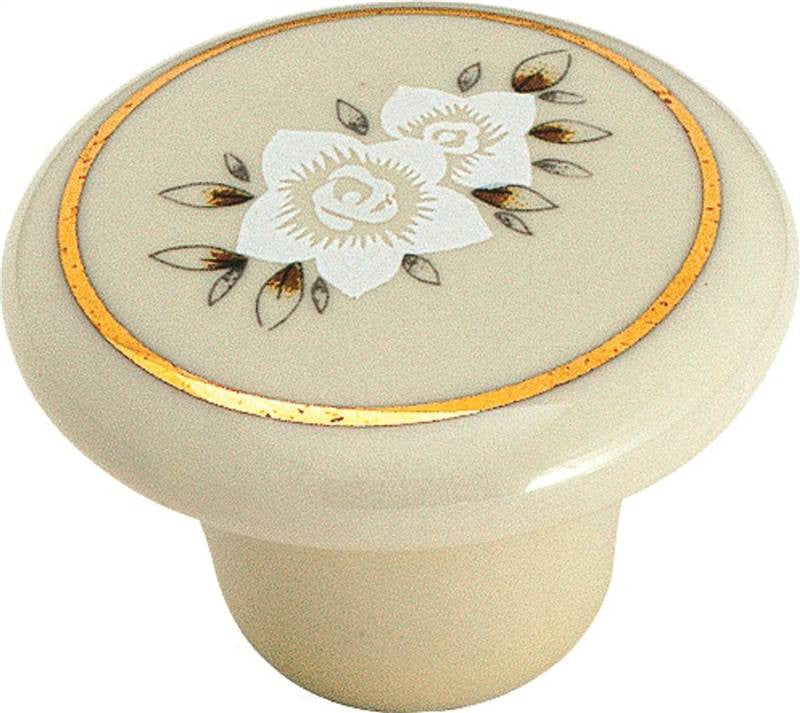 Porcelain knob with 1-1/2" diameter x 15/16" height. Use with one #8-32 x 1" type screw.