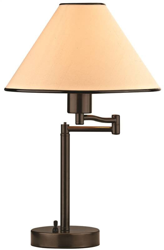 Easy to assemble, complete instructions included. Rotary lampholder. On/Off switch. Uses 60-watt maximum A19 incandescent bulb (not included). Adjustable 18-1/2" overall height. White fabric shade with trim. cULus Listed. Unable to Sell in: CA