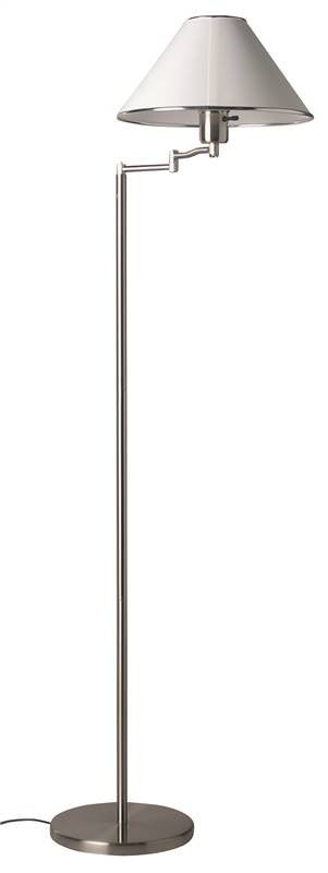 Easy to assemble, complete instructions included. 3-way switch. Uses 100-watt maximum A19 incandescent bulb (not included). 55" overall height. White fabric shade with trim. cULus Listed. Unable to Sell in: CA