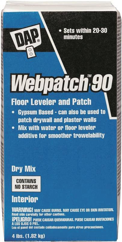 For filling cracks, holes and minor imperfections in subfloors to form a smooth even surface. Used to patch floors, walls and other surfaces in preparation for a decorative finish. Bonds to drywall, wood, concrete and masonry. Non-shrinking patch sets in 20-30 minutes. Can also be used to patch drywall and plaster. Four pounds with 20 ounces of water covers 5 to 14 sq. ft. Twenty-five pounds with 4 quarts of water covers 30 to 80 sq. ft. Coverage depends on the thickness of application.