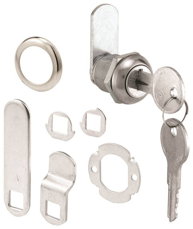 Stainless steel face. Plated diecast housing and steel cams can be mounted to metal or wood doors and drawers from 5/16" thick. 5/8"D x 2"L. Keyed locking for maximum security. Uses Yale Y-11 keyway. Includes 1 lock, 3 cams, 1 trim collar, 1 spur washer, 2 rotation washers, 1 lock nut, and 2 keys.