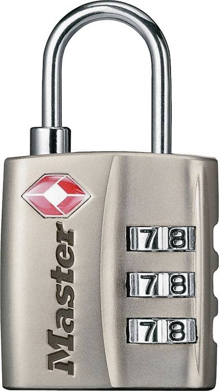 3-dial combination convenience, sturdy metal construction and side window for easy viewing. Nickel finish. Transportation Security Approved lock designed with a security feature, which allows airport security agents to open the lock. Travel Sentry-logo on lock indicates to TSA screeners that they can use a secure set of codes and tools to unlock, inspect and relock traveler's baggage without damaging the lock. TSA guarantees replacement of the lock if screeners cut the lock. 1-1/4" wide case, 1/8" diameter shackle, and 1/2" horizontal shackle clearance.