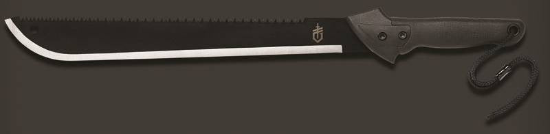 The Gator machete has a 15" fine edge blade on one side and an 18" high performance saw blade on the other. It's forged of high carbon stainless steel. The handle is covered with a gator grip rubberized handle for comfort and control. Riveted, nylon sheath included for secure carry. Made for use in the wilderness, as well as the backyard. It's a dual purpose, lightweight machete for beating back the underbrush and trailblazing.