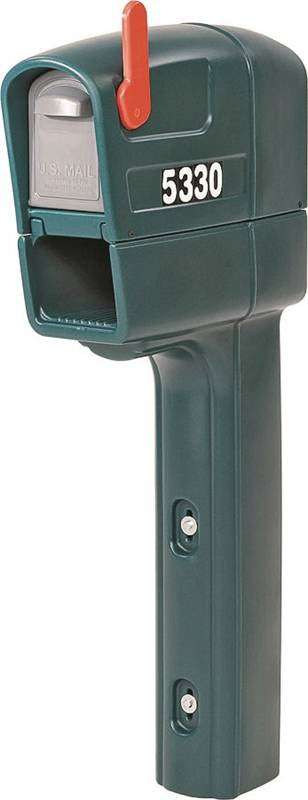Slim design, Heavy-duty poly construction is durable and resists vandals. Molded-in newspaper tube with rear flap. Front and rear access to interior compartments. Mounts to existing or new 4x4 post (not included). Includes address numbers, mounting hardware, and post cover. Minimal assembly required. Size: 50-1/2"H x 22-1/4"W x 9-1/4"D.