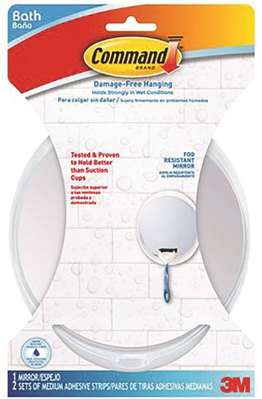 Stands up to hot, wet and humid environments and sticks to a variety of surfaces, including glass, mirror, tile, fiberglass, wood and painted surfaces. Tested and proven to hold better than suction cups, it is easy to apply and come off cleanly without damage. Repositioning is easy with assorted water resistant refill strips. Great for bathroom organization including guest bathrooms, renters and dorm life. Contains 1 mirror, 2 water resistant strips. 6-3/8"L x 7-1/8"W x 1-1/4"H.