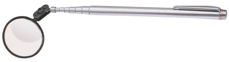 Mirror is fully polished for crystal clear reflections, dual ball and socket joints permit infinite angle adjustments of the mirror, convenient pocket clip for use in the field. Facilitates inspection of inaccessible work pieces and machines by tool makers, assemblers, inspectors, and mechanics; 1-3/8" diameter inspection Mirror with telescoping shaft extends from 5" to 27-1/2" in length.