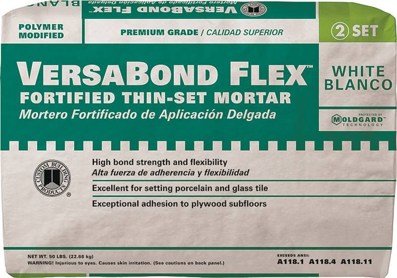 Polymer-modified for strength, just add water. Adheres to most surfaces and types of tile. Bonds well to vitreous, semi-vitreous or absorptive tile: ceramic quarry, cement; impervious porcelain tile, glass mosaics, brick and mini-brick, precast terrazzo, and natural stone tile. Fast setting even in cold weather. Exceeds ANSI: A118.4 and A118.11. Covers 80 - 90 sq. ft. per 50 lbs. when applied with a 1/4" x 1/4" x 1/4" square-notch trowel.