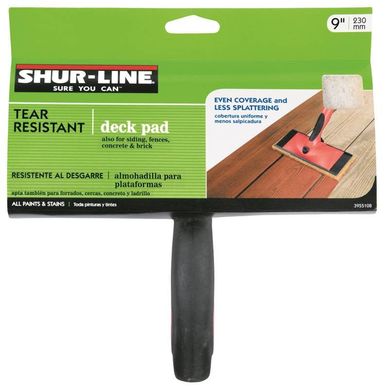 Designed to prevent dripping and pooling for even coverage and accuracy. Tear resistant pads help prevent ripping due to screws, nails or rough wood. Even coverage and less splatter. Also for siding, fences, concrete and brick. Pivoted handle for comfort and control. Handle locks for fixed position. Threaded to fit most extension poles.