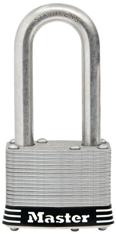 Stainless steel lock body and shackle delivers the maximum weather resistance available. 1-3/4" (44mm) wide. Brass 4-Pin tumbler cylinder for increased weather and pick resistance. Double locking levers for increased pry resistance.