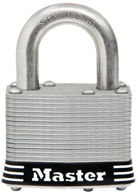 Stainless steel lock body and shackle delivers the maximum weather resistance. 2in (51mm) wide. Brass 4-Pin tumbler cylinder for increased weather and pick resistance. Double locking levers for increased pry resistance.