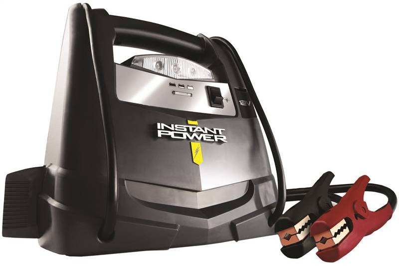Built-in charger for automatic charging of internal battery. Battery status LEDs indicate when battery is charged or needs charging. Sure-grip clamps fit both top and side mount batteries. Cables stay flexible in cold weather. 12 volt accessory outlet. Maintenance-free, sealed lead-acid battery allows storage in any position. 116 cold cranking amps. 99 cranking amps for 30 seconds. 185 cranking amps for 5 seconds. 400 peak amps.