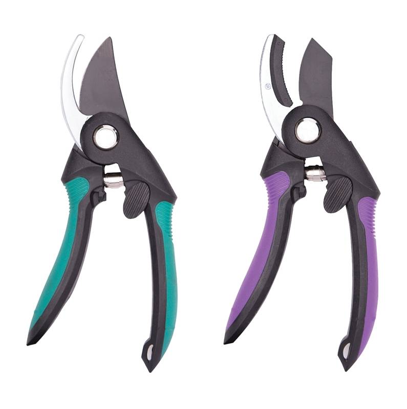Includes 8" anvil and by-pass pruners. Teflon coated, non-stick blade for no gumming and rust resistance for long lasting sharpness and easy to clean. Comfortable ergonomic grips reduces hand stress while cutting. Easy lock mechanism. Max. green cut: 1/2" (13mm).