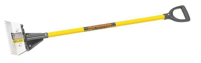 Angled head to reduce strain on back and arms. Professional quality tool makes shingle and nail removal easier. Extra-strong steel brace and carbon steel skid plate. Replaceable 9" serrated steel blade.