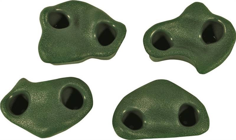 Climbing rocks are a smaller version of Playstar's popular Extra Large Climbing Rocks. Comparable in size to competitive rocks. Design allows rocks to be gripped from 360 degrees and mounted in unlimited configurations. Includes 4 standard sized uniquely shaped climbing rocks and mounting hardware. For use on 3/4" thick lumber. Proudly made in the U.S.A.