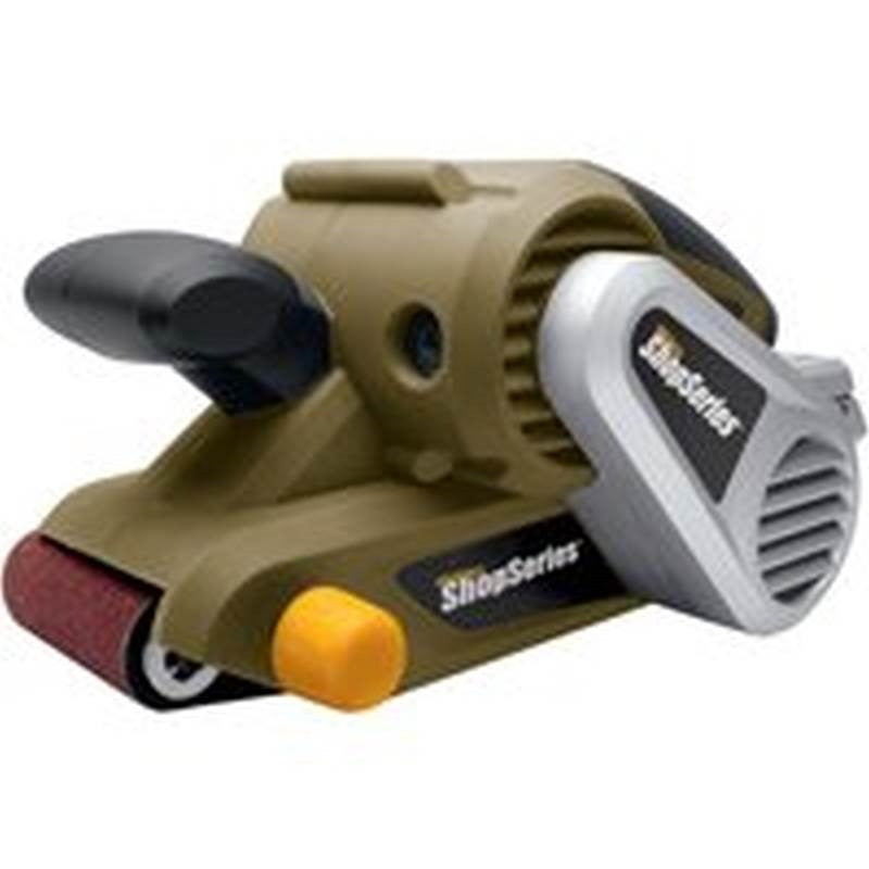 Variable speed for optimum finish. 3" x 21" - 3" x 5-1/2" platen; variable speed 790 - 1,300 sfpm. Rubber grips for comfort and control. 10' power cord. Includes dust bag and sturdy plastic carrying case.