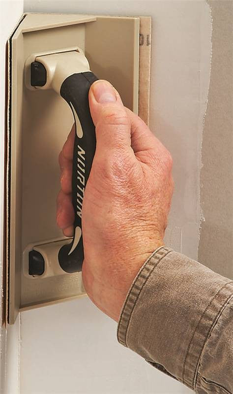 Sands both inside seams of a drywall corner; the light-weight, 90 degree design provides a smooth edge with less risk of wall damage commonly caused by sanding each side separately; works with 8" x 7" hook and loop sanding sheet.