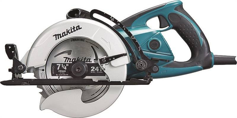 Efficient hypoid gears deliver more power and greater surface contact than conventional worm drive gears, oil bath technology and sealed gear housing for less maintenance, ergonomic rubberized grip, 0-51.5 degree bevel capacity with positive stops at 45 and 51.5 degree, ideal for truss and rafter cut-outs, lower guard design, blade wrench is attached to the saw, externally accessible brushes. Specs: 7-1/4" blade diameter, 5/8" arbor, max cutting capacity: 90 degrees-2-3/8", 45 degrees-1-3/4", 50 degrees 1-9/16", no load RPM-4,500, weighs 14.3lbs. Includes: carbide tipped blade, blade wrench.