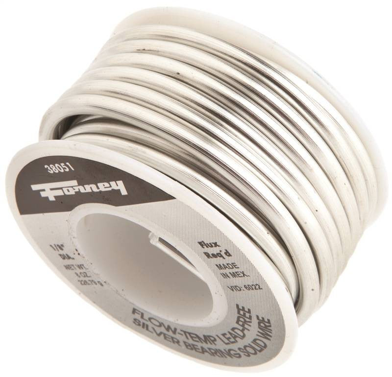 Highly recommended for potable water pipe joints, plumbing, refrigeration systems and non-electrical applications. Does not char. Flows evenly within the joint and has a low melting point. Hardens into a shiny fillet. Leaves no corrosive residue. Grade: 95/4.5/.5 Tin/Copper/Silver. Tensile Strength: 6400 PSI; Melting Temp: 430e (222e C).