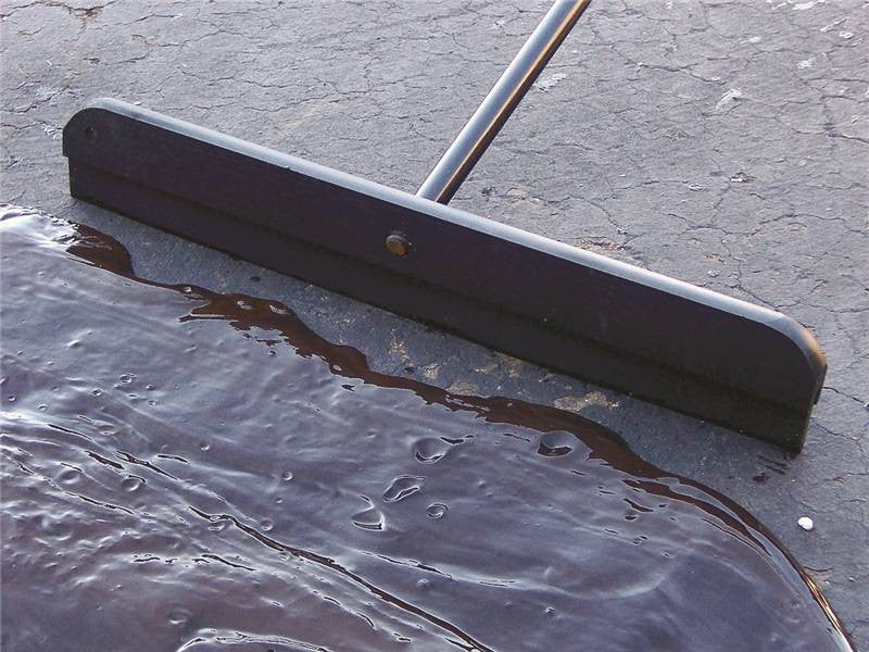 Professional driveway squeegee with chiseled tip for smooth spreading of driveway sealer.