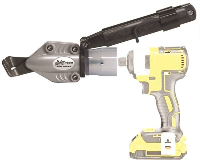 This versatile and portable TurboShear fits a drill you already own to make easy cross cuts, fast lengthwise cuts and precise circular and square outlet cuts in large or small pattern corrugated metal roofing and common trapezoidal (box) pattern metal roofing panels. Elongated blades with compact jaws create a steep 75 degree offset so that the drill is held at a nearly vertical approach when starting a cut. As these offset blades follow the rising angle of a corrugated or trapezoidal profile, the drill handle or battery pack has clearance to naturally tip downward and still clear the roofing panel surface. A sleek, lightweight aluminum-cast shear head and compact molded polymer drill clam allow maximum portability and ease to go wherever the work is. The telescoping drill clamp adjusts to fit both length and width of popular drill sizes including smaller bodied Impact drivers. Optional spaces are stored on clamp for large motor housings. The clamp collar allows the shear head to be rotated360e and set in any position for optimum tool clearance when navigating profiles or to facilitate easy material flow. The shear can operate at high or low speeds for the control you need to follow a precise life in 30 to 24 gauge (0.31-0.61mm) roofing panel metal. A lateral blade adjustment capability ensures that optimum cutting performance and maneuverability can be maintained for the life of the blades.