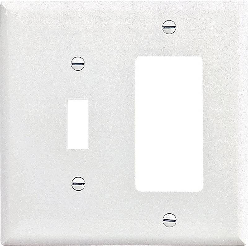 Molded from non-flammable Polycarbonate. Virtually unbreakable, with high structural rigidity, long-term form retention and superior impact and abrasion resistance. Screw-catch feature holds mounting screws captive. Matching screws provided. High gloss finish is soil resistant. Mid-size - 4.875" x 4.938".