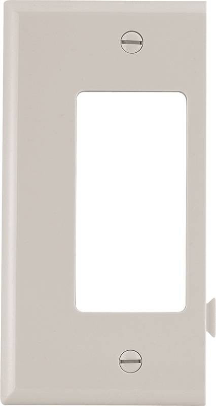End plate. High gloss finish. Thermoplastic construction for durability and flexibility. Easy to snap together and lock. Mid-size design to fit over most existing wall openings. Screw-Catch feature holds already attached mounting screws captive for easy installation. Screws are slotted steel, baked enamel and painted. Meets current Federal specifications as tested to UL 514 (file no. E33216). Meets CSA standard C22.2, No. 42.1, (file no.9294). NEMA WD-1, WD-6. Meets flammability requirements per UL 94, V2 rated. Temperature rating -40 degrees C to 70 degrees C.
