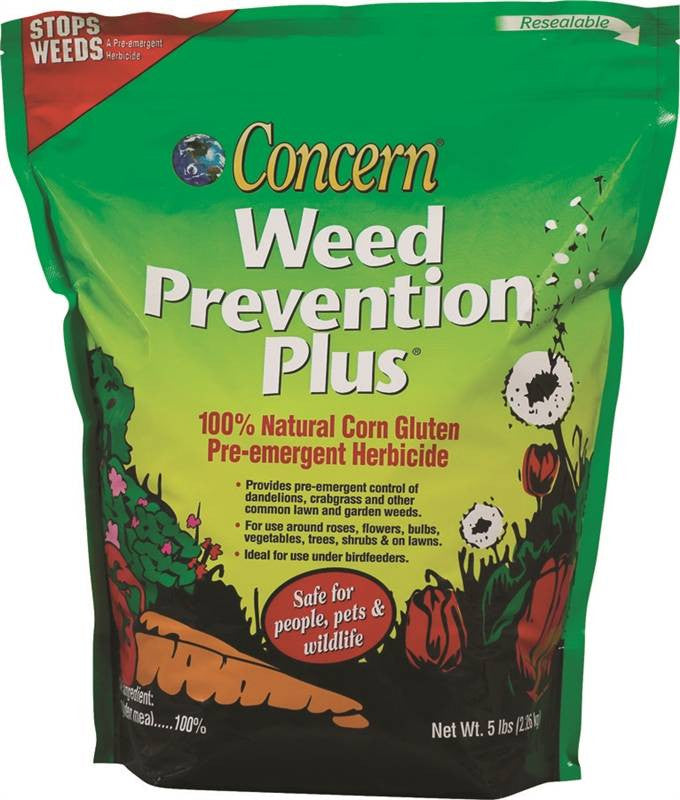 Weed prevention with 100 percent corn gluten. Provides pre-emergent control of dandelions, crabgrass and other common lawn and garden weeds. Use to control weeds in flower gardens, vegetable gardens and in landscaping around trees, shrubs and ornamentals. Also ideal for use under bird feeders. Product contained in an easy to use re-sealable bag. Safe for people, pets and wildlife.