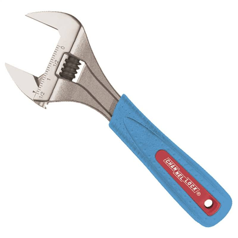 Same capacity as a 12" wrench; longer jaws grip better, avoiding slippage or nut round off; measurement scales (inches on front; mm on reverse) are handy for sizing nuts, pipe and tube diameters; 4 thread knurl and non-protruding jaws provide greater capacity; minimal head width improves performance in confined spaces; "Code Blue" grips are designed for durability and comfort.