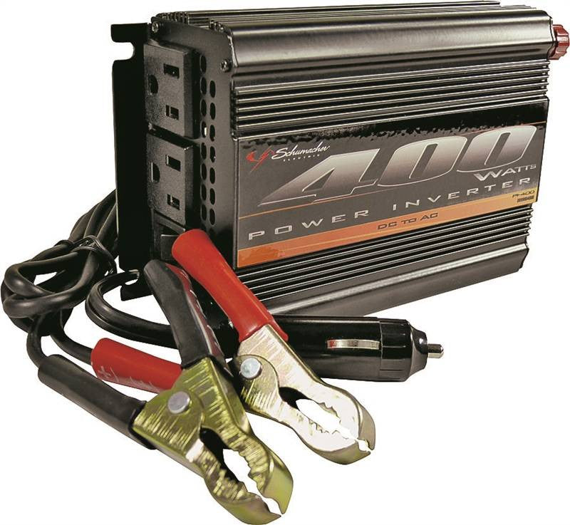 Convert 12 volt DC to 115 volt AC instantly wherever and whenever needed. Built-in, high-speed cooling fan helps keep the unit cool. On/off switch and LED Indicator. 410 watts continuous, 820-watt peak surge power. 12 volt cigarette lighter/accessory plug or clamps to battery.