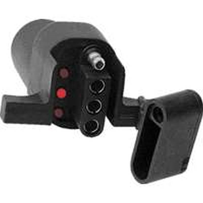 Converts 6-way connectors with round terminals to standard 4-way flat connectors. Easy-pull grip design, impact and corrosion resistant. Includes dust cover.