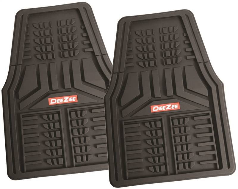 Thick OEM quality rubber. Deep grooves keep dirt off carpet, holds more water. Cleated back prevents slipping. Sold in pairs. 19" width x 28" height x 1" thick.