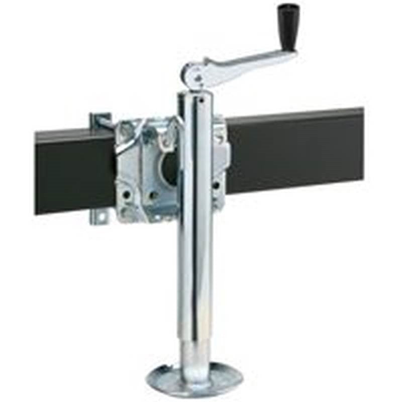 Zinc finish, steel foot plate, bolt-on swivel bracket. Handle folds and locks into the storage position.