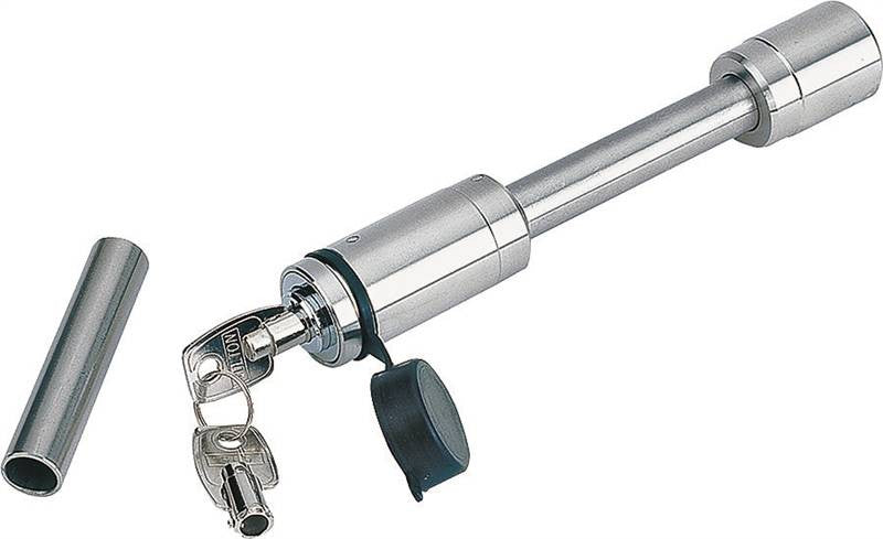Fits 5/8" or 1/2" receiver pin holes. Rubber dust cap and vending machine key for durability.