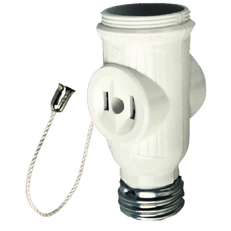Socket to one socket and two side outlets. Pull chain controls lampholder. Side outlets are always on. 125 volt - 660 watts. UL Listed.