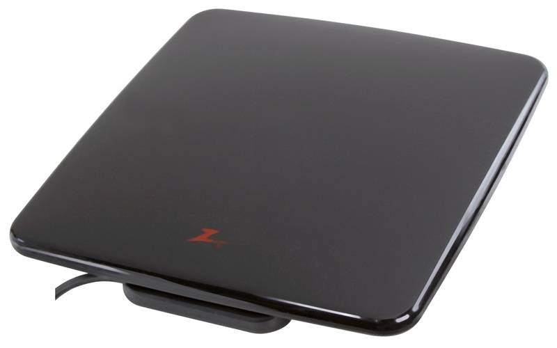 High gain, low noise, wide band. Signal Clear Technology performs through extremely low noise circuitry for fewer artifacts affecting picture quality. Digitally optimized, receives full HD television signals, horizontal or vertical polarizations, 360 degree omnidirectional. Provides reception with minimal position adjustment. Wall mountable. Blue power indicator light. Powered by AC adapter or USB cable (both included). 9.25" height x 9" width x 3" depth.