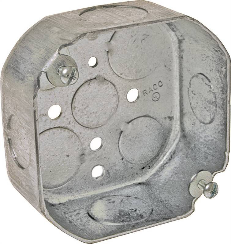 Two 1/2" and two 3/4" conduit knockouts (sides). Two 1/2" and two 3/4" conduit knockouts (bottom). No bracket. Can be used in the installation of ceiling or wall lighting fixtures or as a junction box. Not designed for ceiling fan support. 50 pound maximum recommended static load. Acceptable for use in 2-hour fire rated walls. UL Listed. UPC bar code.