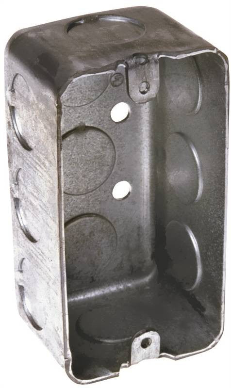 Drawn construction and raised grounding provision for surface mount applications. Four 3/4" knockouts (sides). Two 3/4" knockouts (ends). One 3/4" knockout (bottom). 4" x 2" x 1-7/8" deep. 13.0 cubic inch capacity. UL Listed.