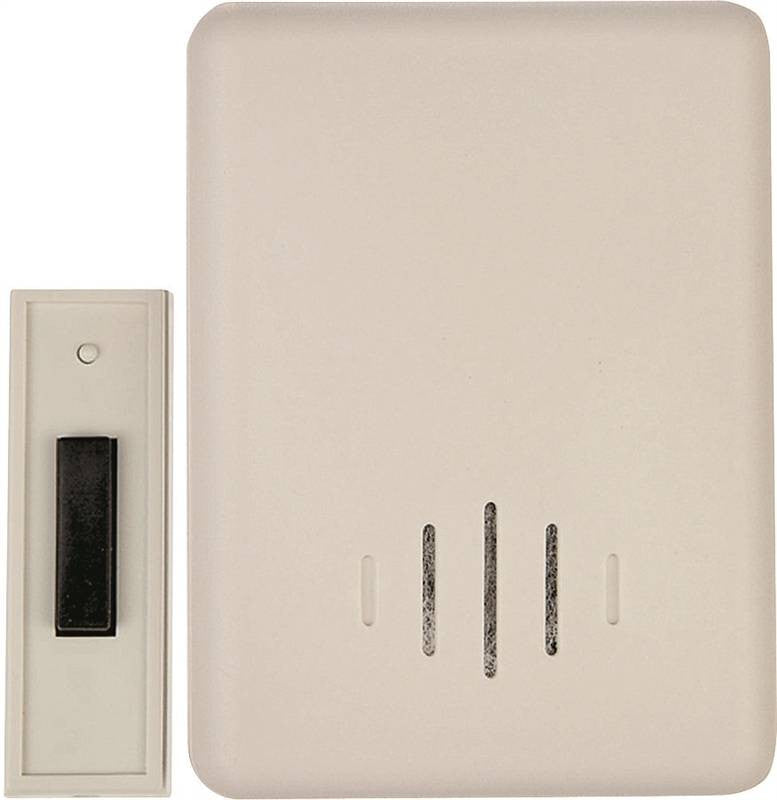 Economy battery chime. Different sounds for front and back doors. 32 selectable codes. Up to 75 foot operating range. Compatible with all Carlon wireless chime systems. Uses 3 AAA alkaline batteries (not included).