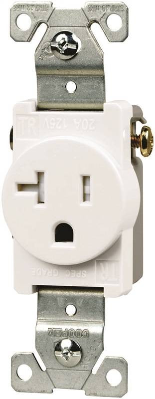 Meets all UL 498 requirements. Triple wire line contacts provide excellent long-term plug retention. Arc-resistant thermostat face. Side wire terminals accept up to #10 solid or stranded wire. Terminal screws backed out. Tamper resistant receptacles have a UL Listed shutter system. 20 amp, 125 volt.