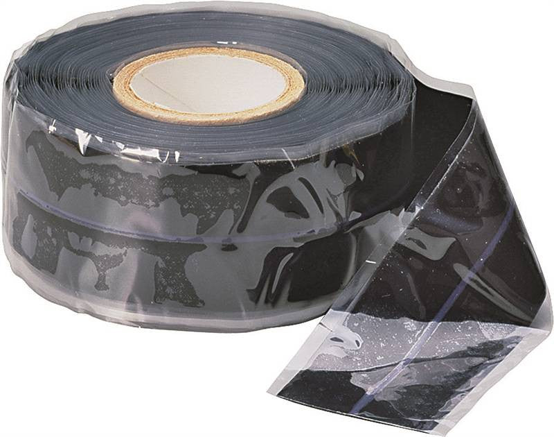 Self-sealing silicone repair tape. Stretch, wrap, and protect or repair everything from leaky hoses, pipe insulation, electrical connections, tool handles, air ducts and cord/rope ends. Non-adhesive formula leaves no sticky residue. Waterproof and insulate with no extra equipment or heat required. Stretches up to 300 percent of its original length with 60 ppi tear strength. Begins to bond immediately on contact with itself. Repositioning is not recommended after 2 minutes of contact, and the bond is permanent within 24 hours. Operates and remains flexible from -60 degreesF (-51 degreesC) to 500 degreesF (260 degreesC).