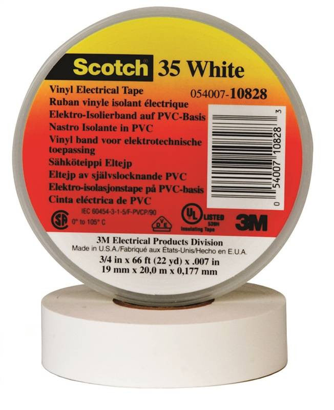 Used in phase identification, color coding leads and piping systems and for marking safety areas. Abrasion and weather resistant, flame-retardant with excellent mechanical and electrical insulation properties. Wraps smoothly and holds tight in cold to 0 degrees F or hot to 220 degrees F. UL Listed and CSA Certified.