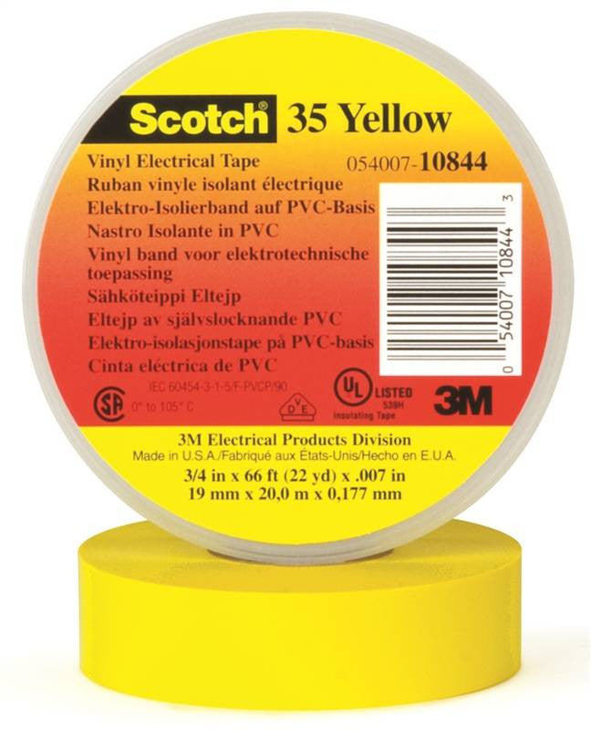 Used in phase identification, color coding leads and piping systems and for marking safety areas. Abrasion and weather resistant, flame-retardant with excellent mechanical and electrical insulation properties. Wraps smoothly and holds tight in cold to 0 degrees F or hot to 220 degrees F. UL Listed and CSA Certified.
