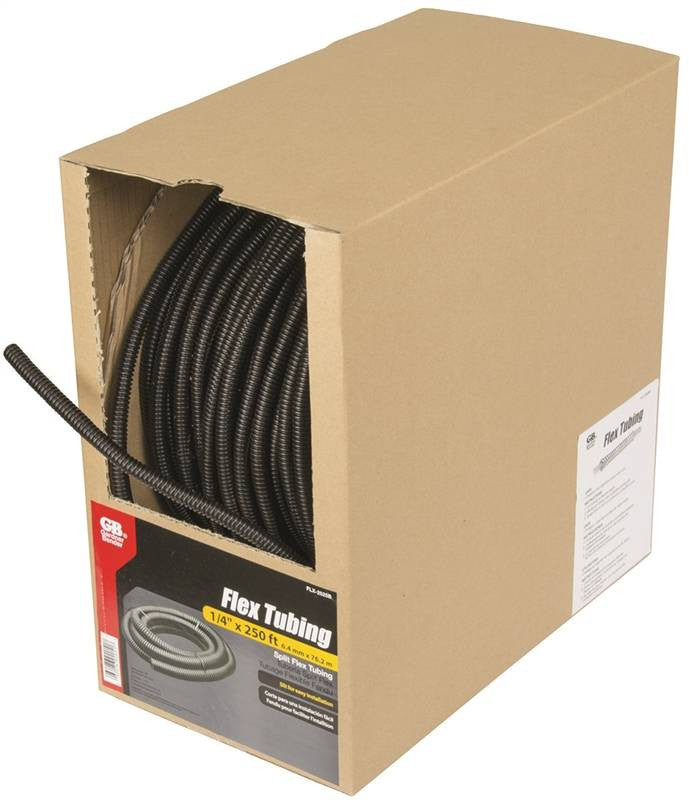 Protects hoses, wire and cables from cuts, abrasions and UV wear. Corrugated for added flexibility. Split down the center for wire breakout where needed. Black.