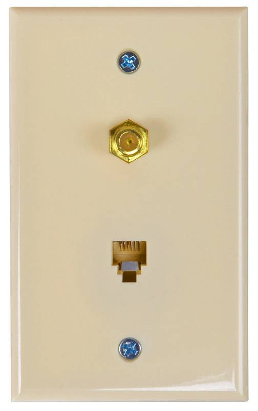 Connects phone wire and coax cable through a wall. 4.5" height x 2.75" width x 1" depth.