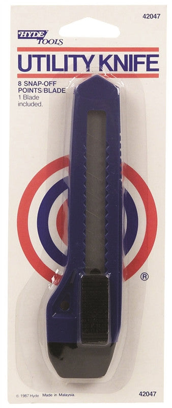 Retractable blade with two piece positive lock, built-in blade breaker with pocket clip; includes one blade.