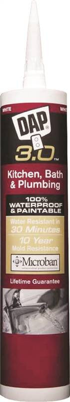 KwikDry technology, dries in three hours. Dap 3.0 contains Microban and is mold and mildew resistant. Permanently flexible. Waterproof seal. Paintable.