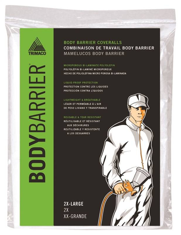 Microporous bi-laminate polyolefin nonwoven liquid proof material. Breathable, lightweight, reusable, tear resistant and disposable. Elastic wrists and ankles, zip front. Rental.