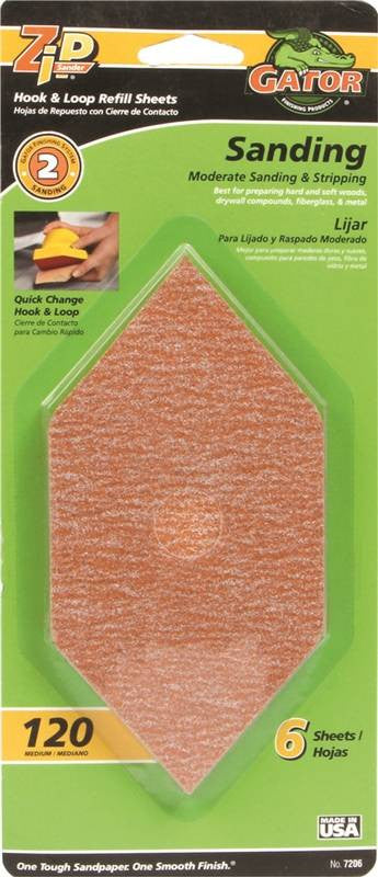 For use on wood, metal, drywall, fiberglass, and painted surfaces. Manufactured with high performance grain. Anti-clog coating to reduce buildup. "Quick-Change" hook & loop sanding refills for Zip Sander Orgill SKU# 743.6280.