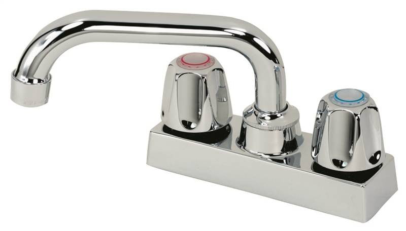 4" center distance, tubular spout with 3/4" hose thread outlet, replaceable seats and springs or washerless cartridge. 6" spout.